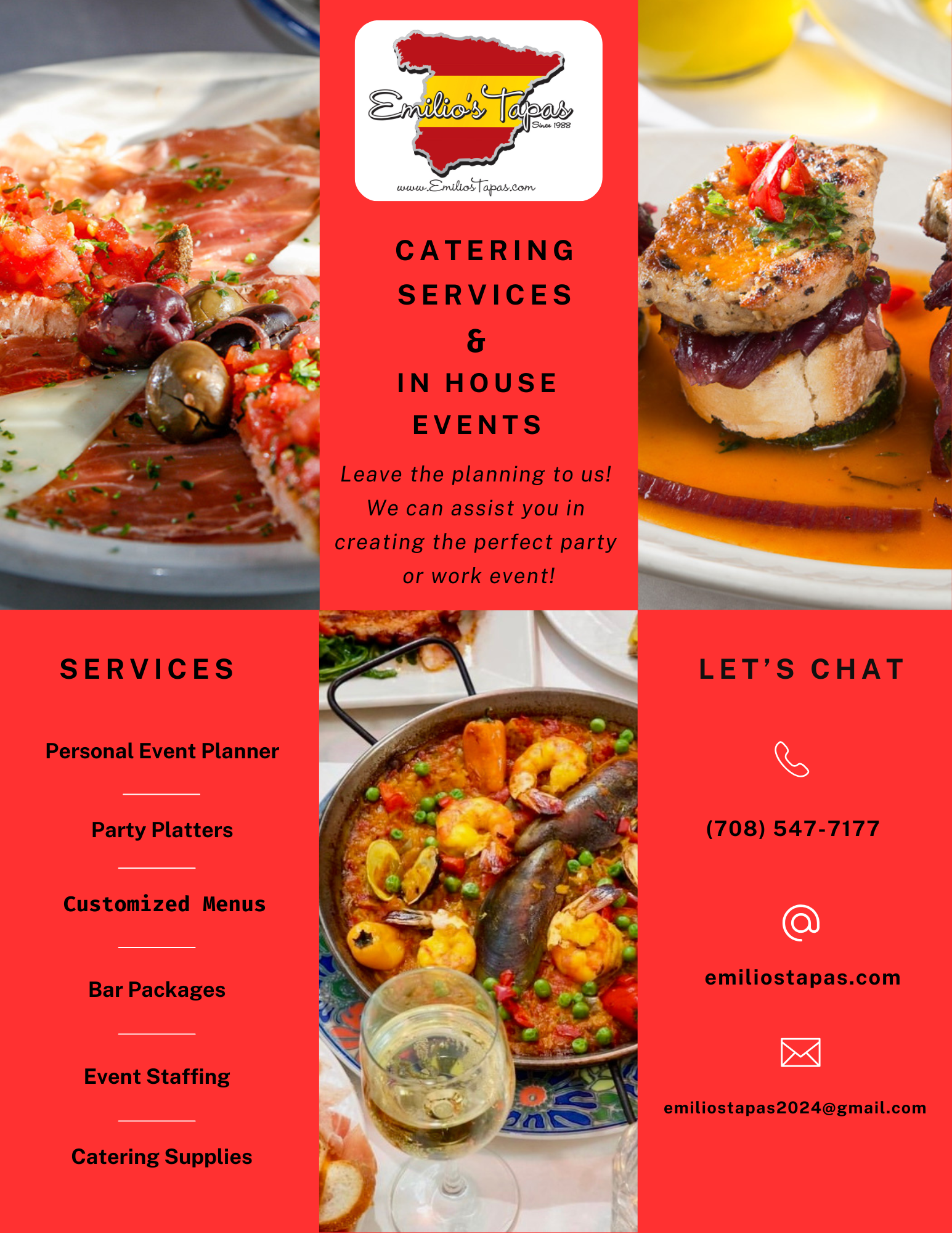 We have a burning passion to bring all the best of fresh from our kitchen to your table. Bring the flavors of Emilio’s to your office, home or event with our Catering Menu.